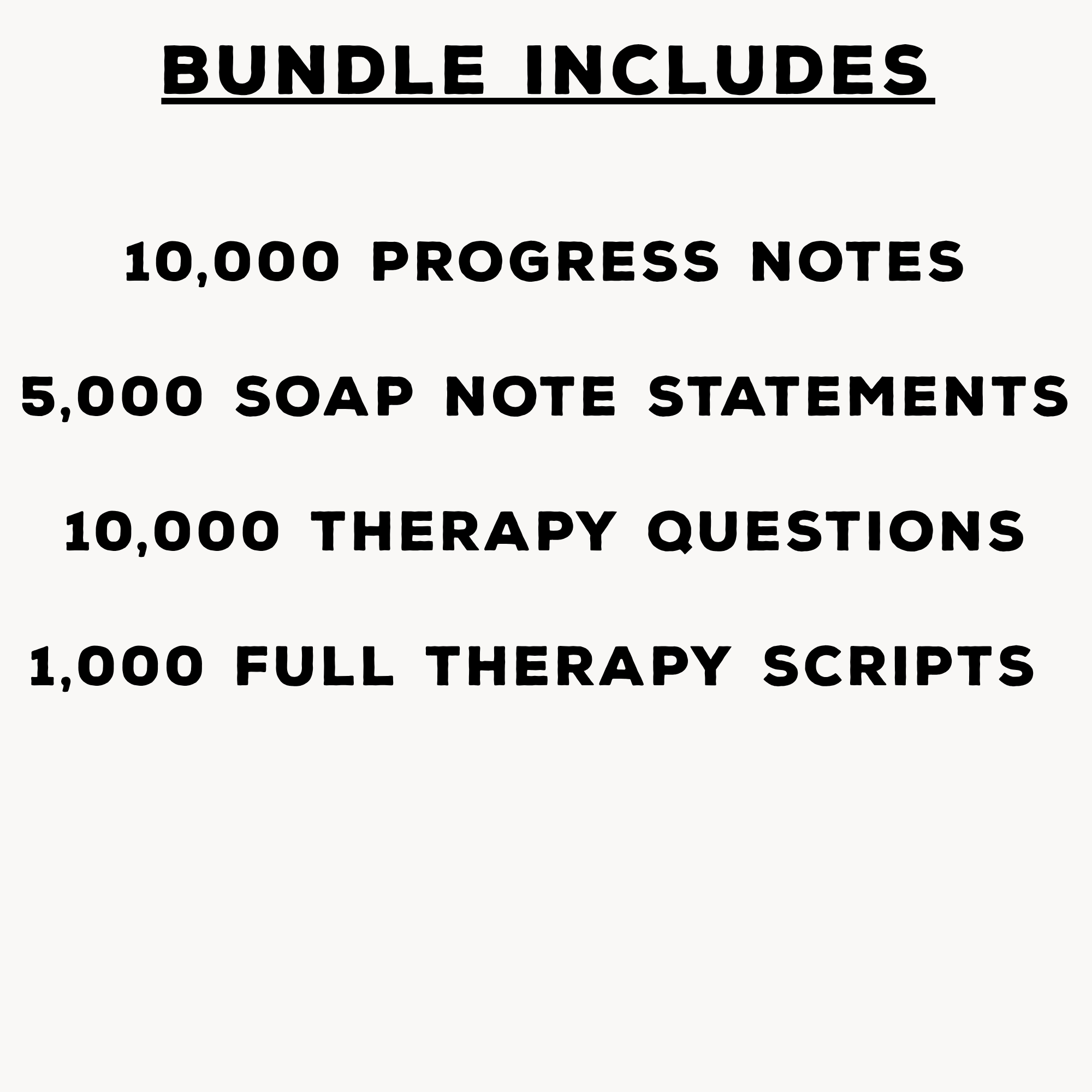 26,000 Therapy Premium Bundle (Progress Notes, Soap Notes, Therapy Questions, Therapy Scripts)